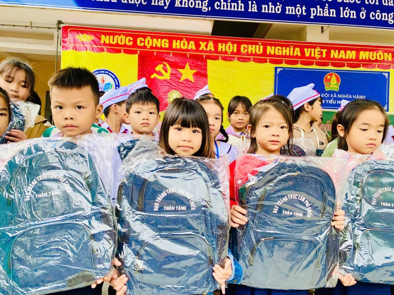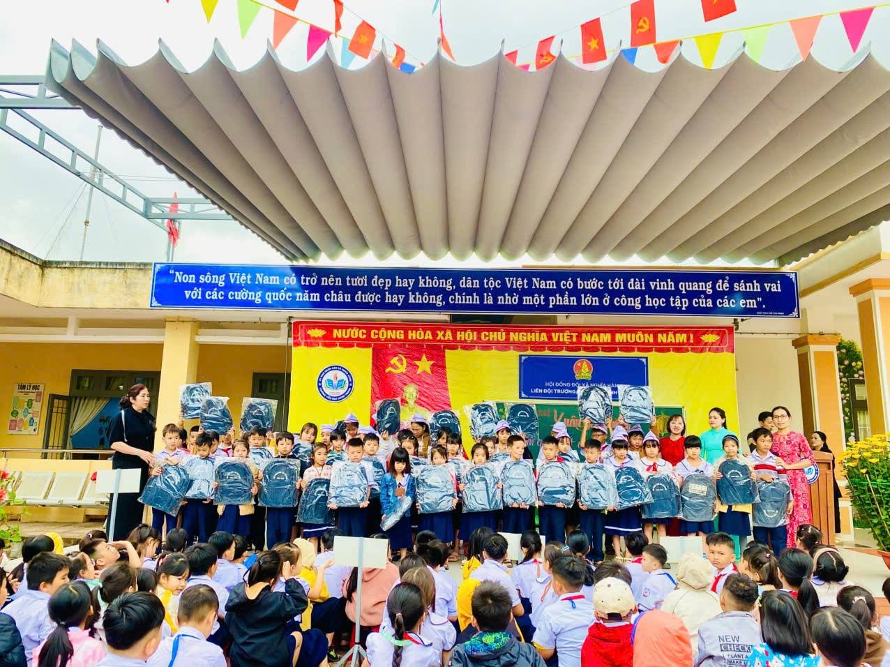 Tại chương trình, nhà trường đã: Trao 50 chiếc cặp học sinh